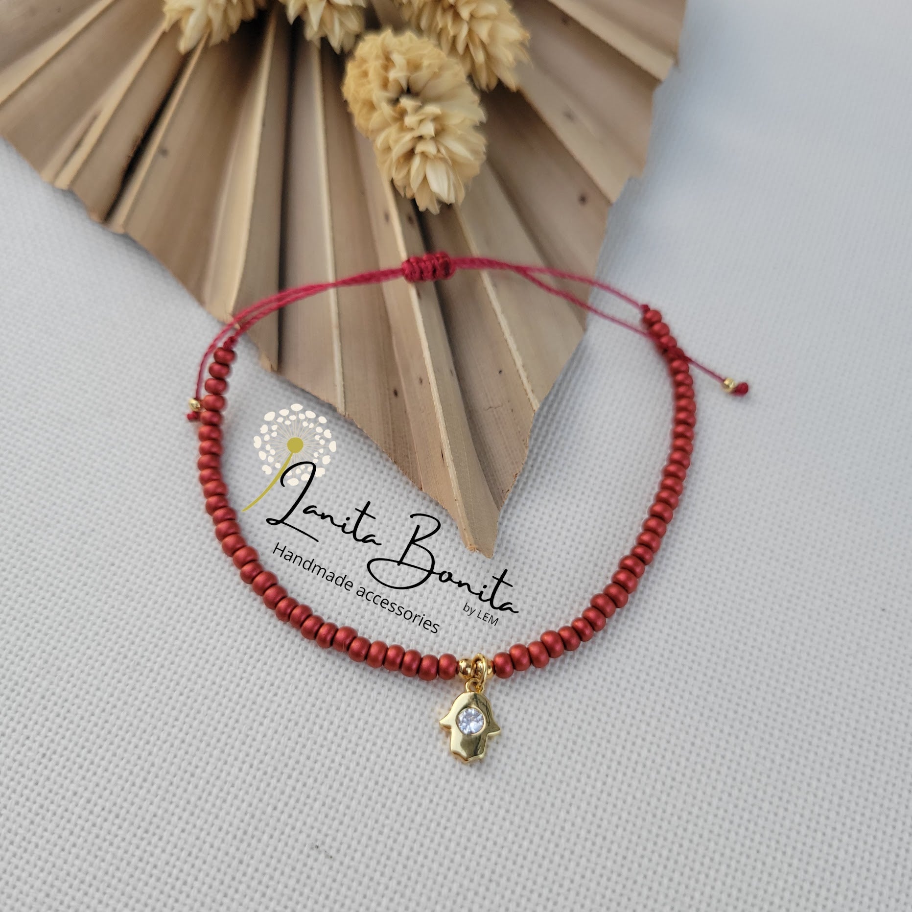 Material: Glass czech beads, stainless steel, gold plated, zirconia, chinese and nylon thread.
