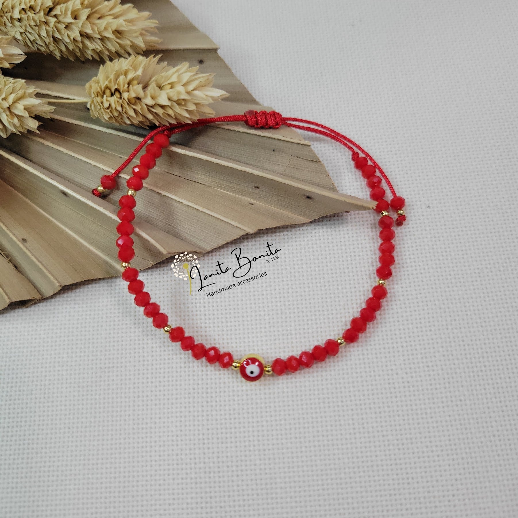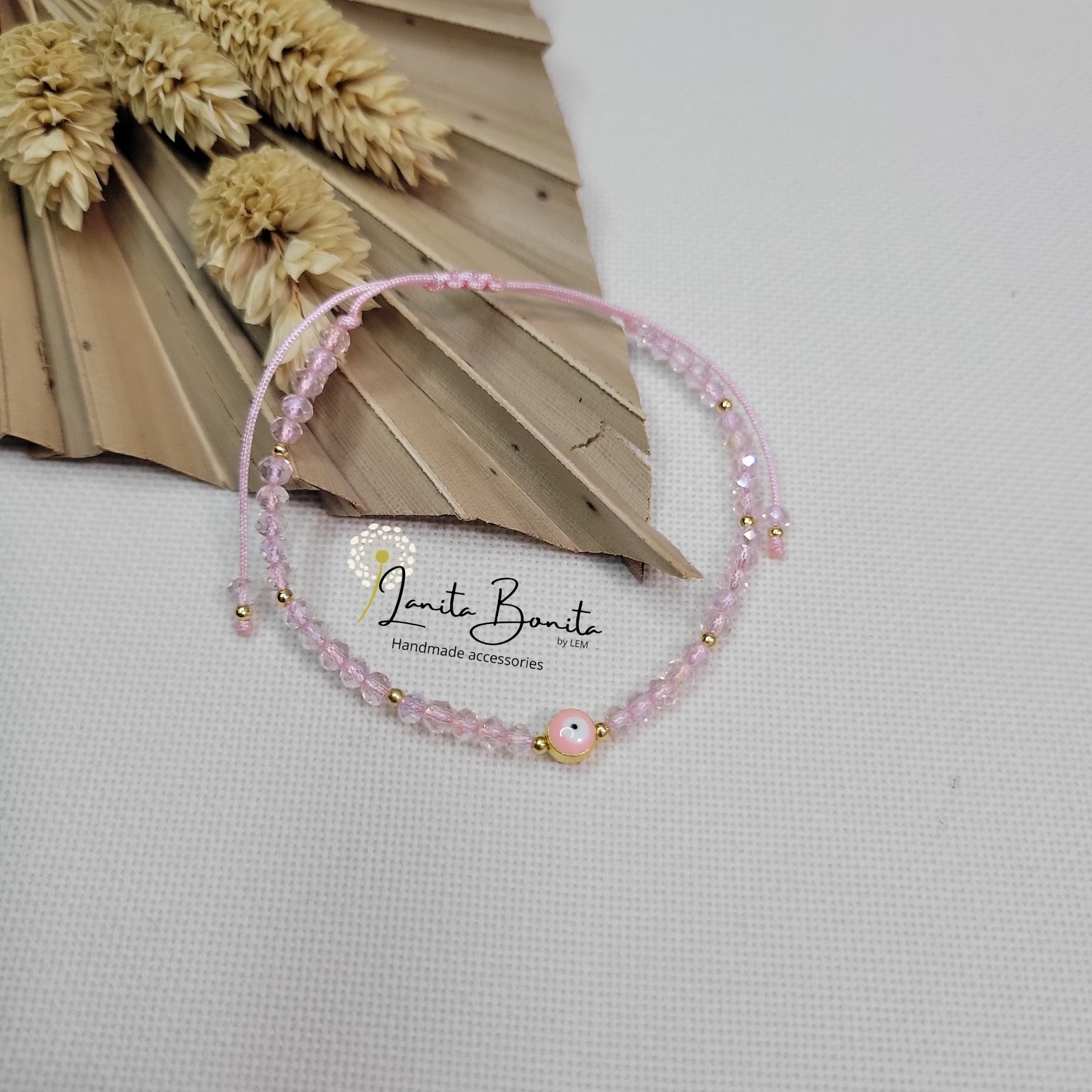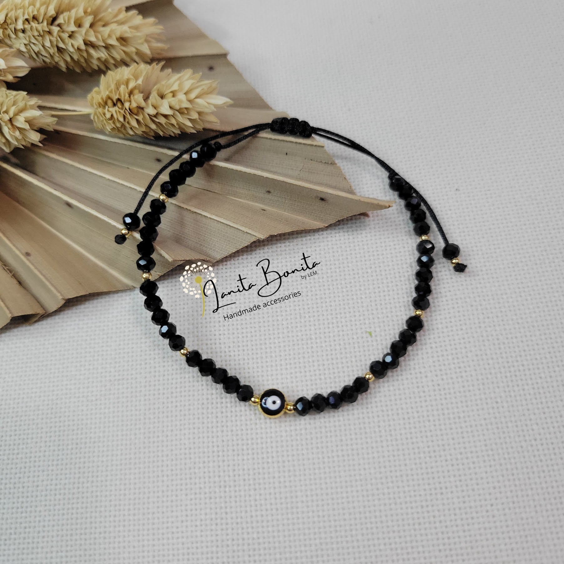 Material: Glass rondelle beads, stainless steel, gold plated and nylon thread.