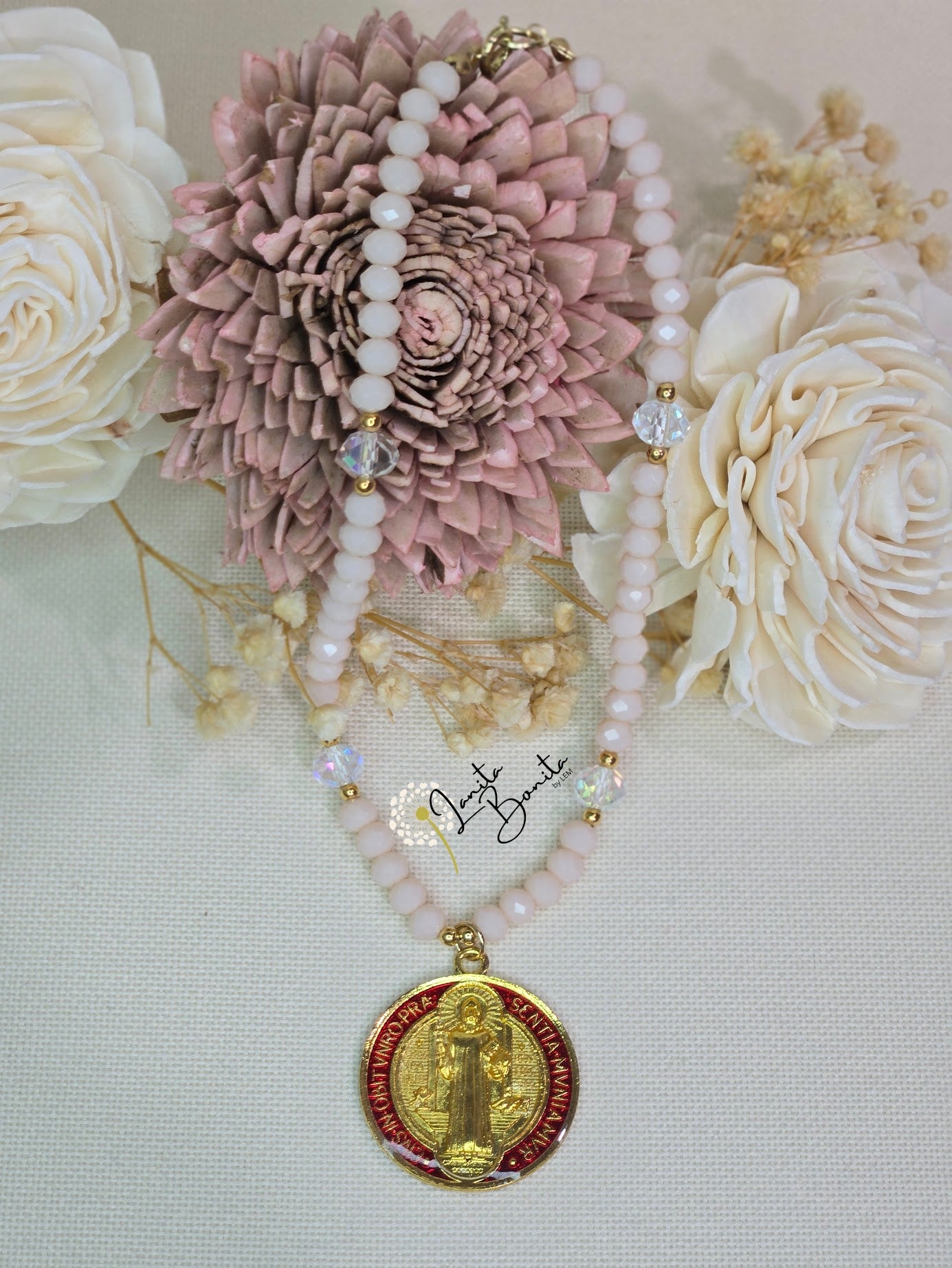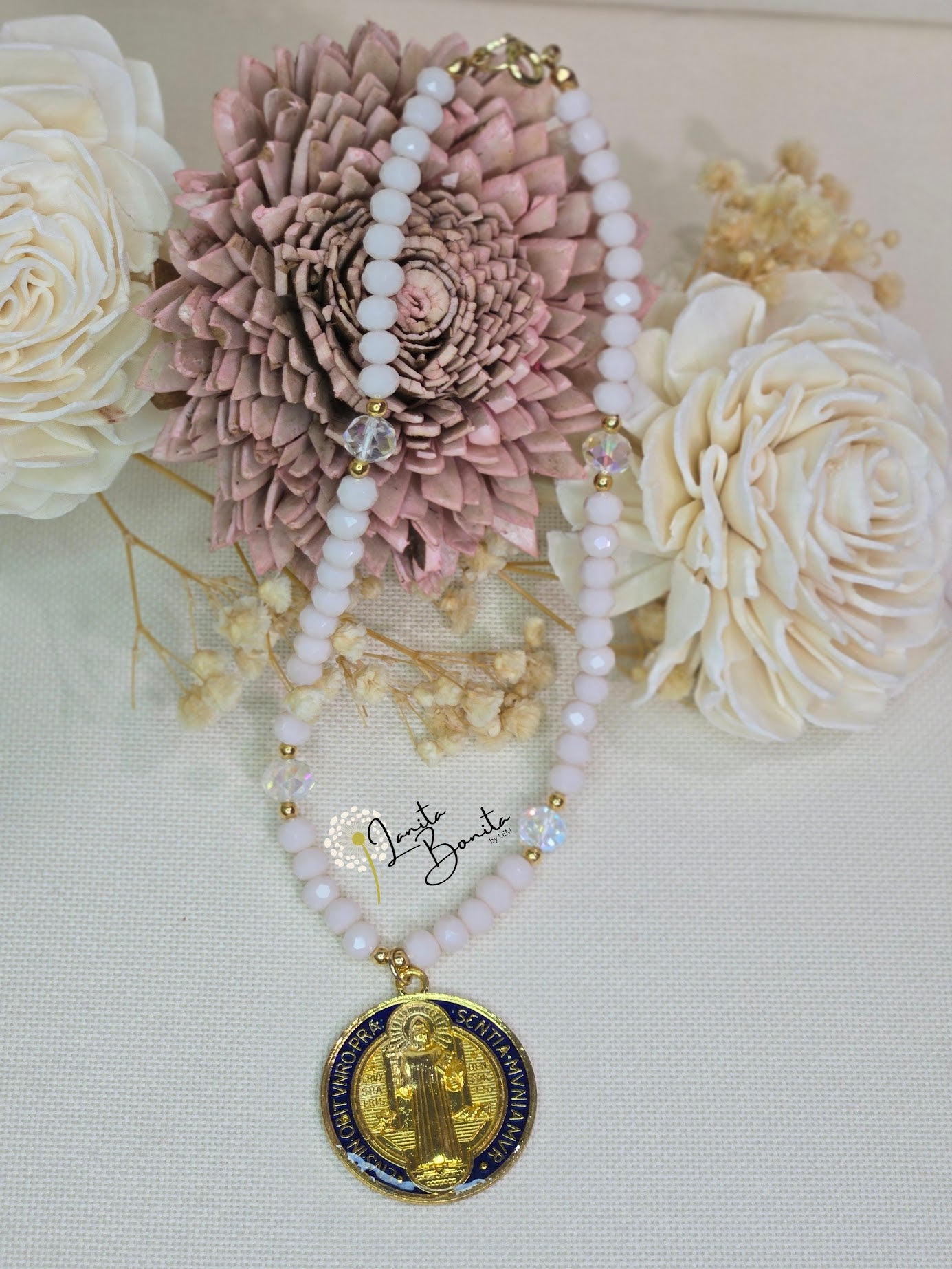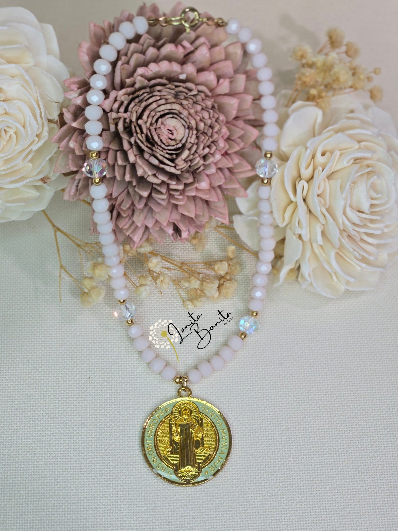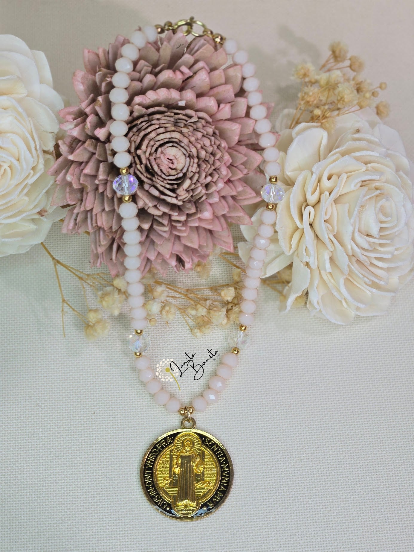 Material: Glass czech beads, gold plated beads and chinese thread.