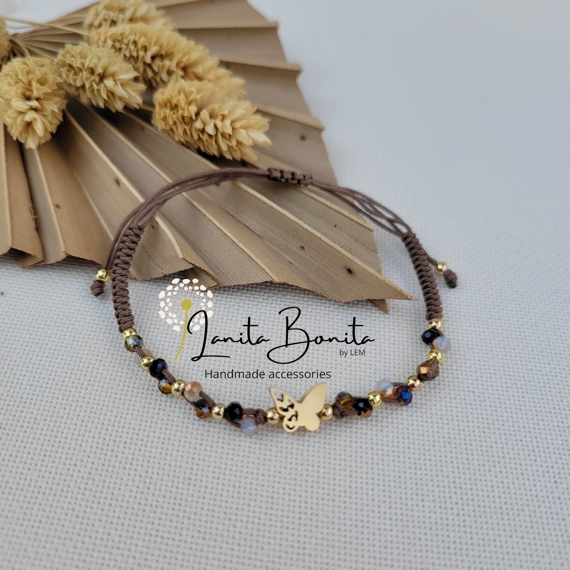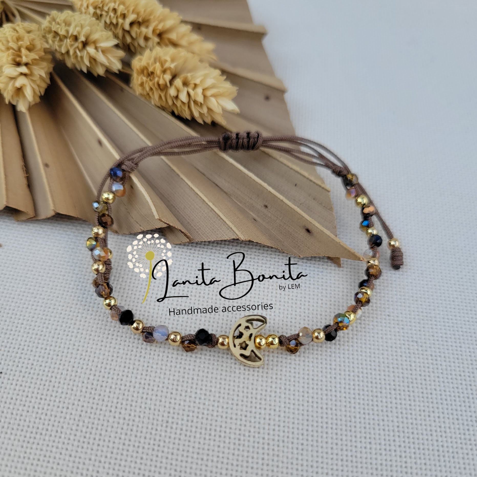 Material: Glass rondelle beads, gold plated and chinese thread.