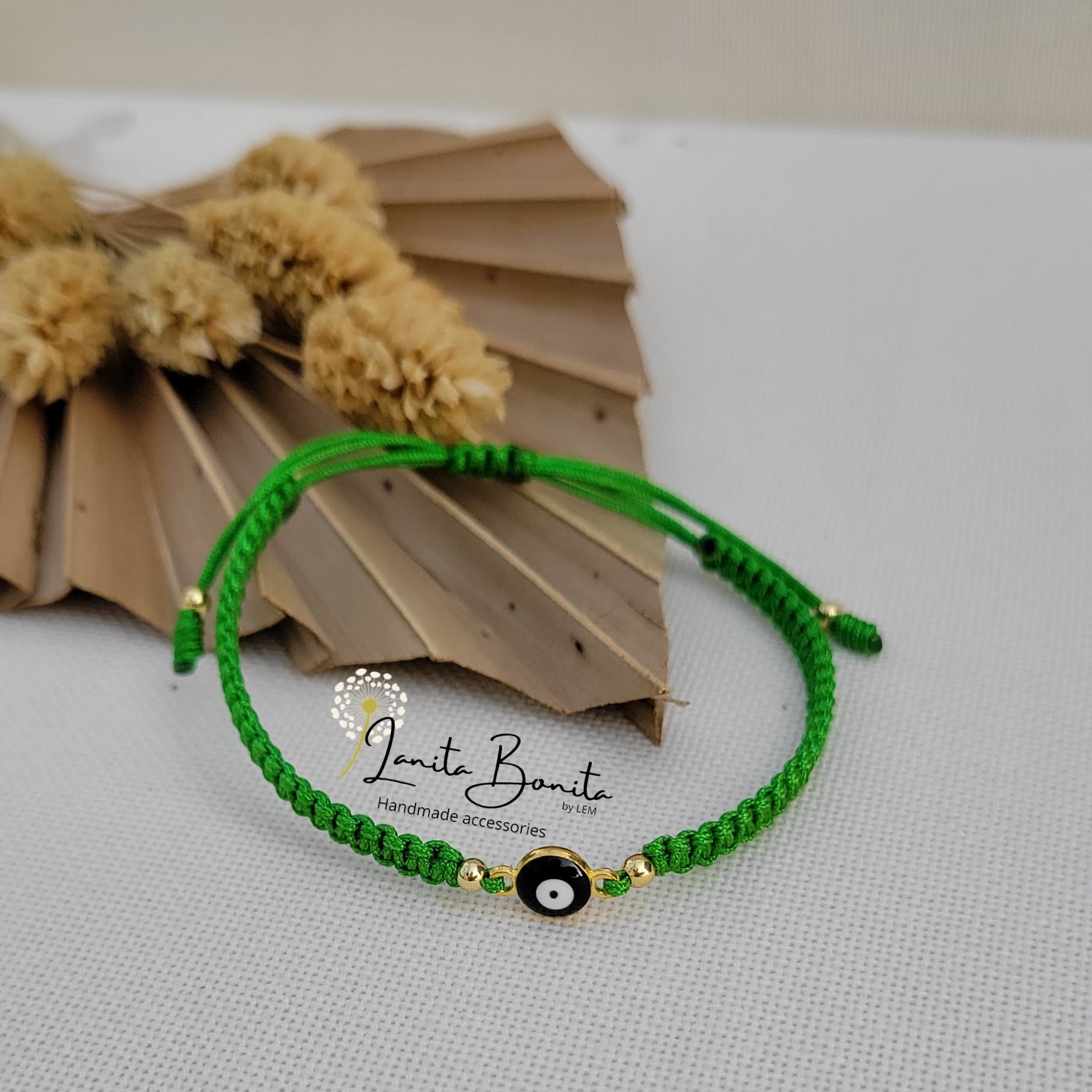 Material: Glass beads, stainless steel, gold plated and chinese thread.